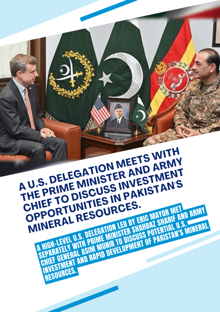 US delegation meets with Prime Minister and Army Chief, discussing investment in Pakistan’s mineral resources